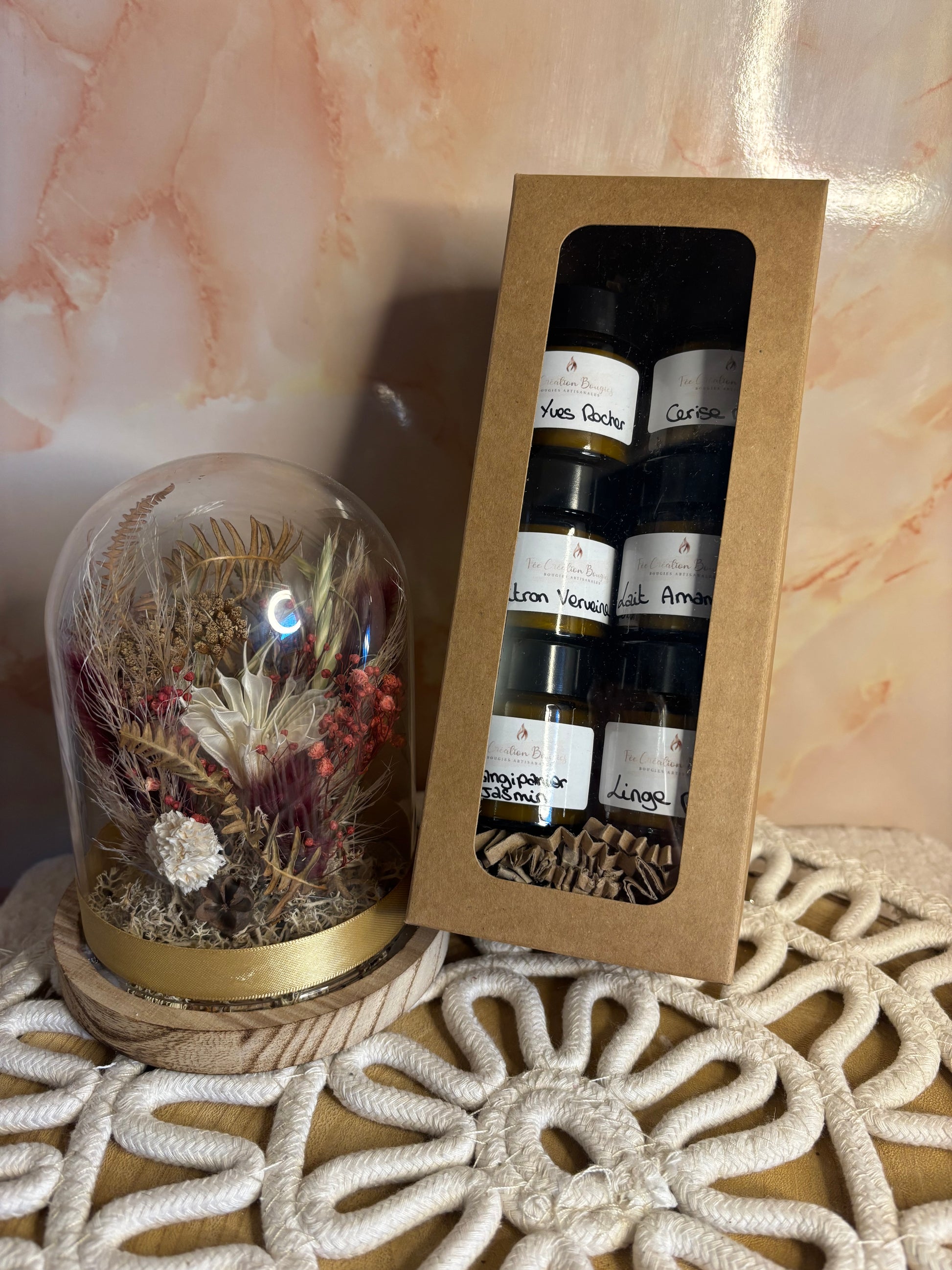 100% en cire de soja, fragrance d’origine française,et fabriquées individuellement à la main
