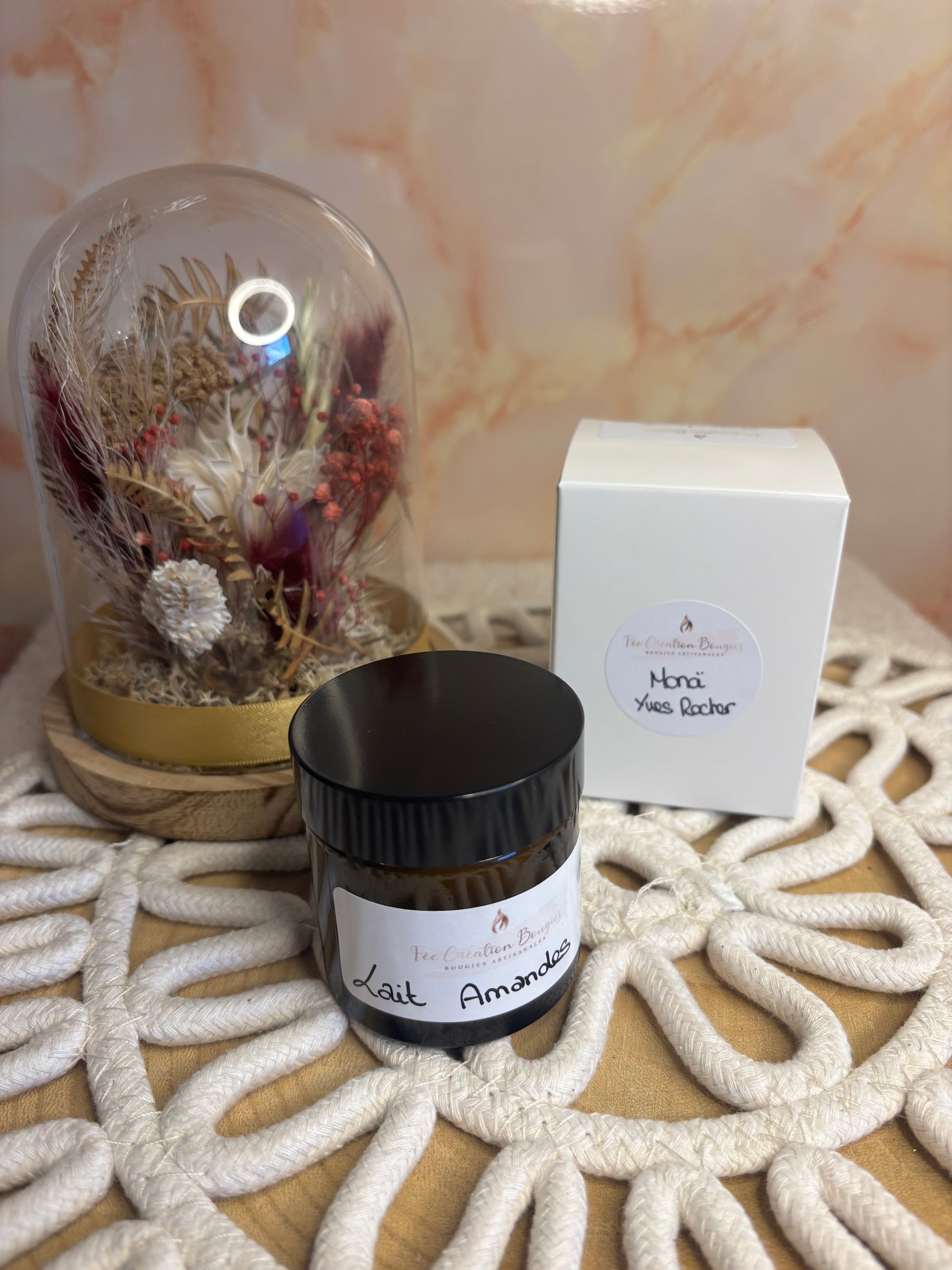 100% en cire de soja, fragrance d’origine française,et fabriquées individuellement à la main
